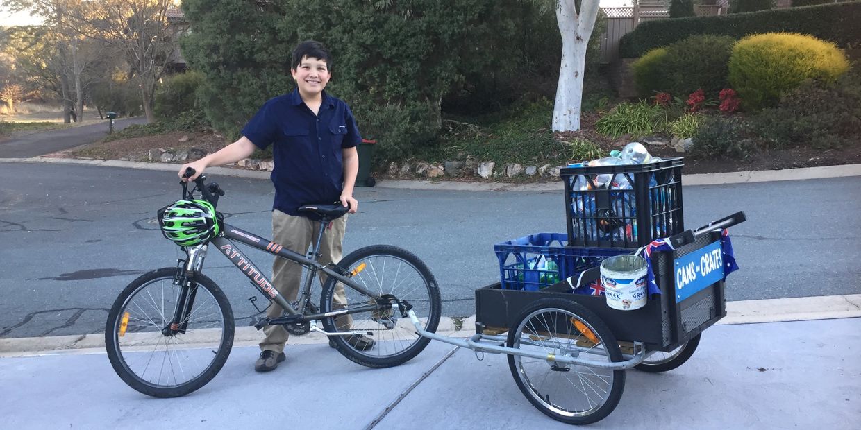 James and his Mum, Jodie officially launch Canberra Kids Collecting. Keen to pay it forward to the community and inspire more kids to take advantage of the container deposit scheme and start their own small businesses. The Riot-Act runs a story about James twelve months on from starting his own business, Cans in Crates.